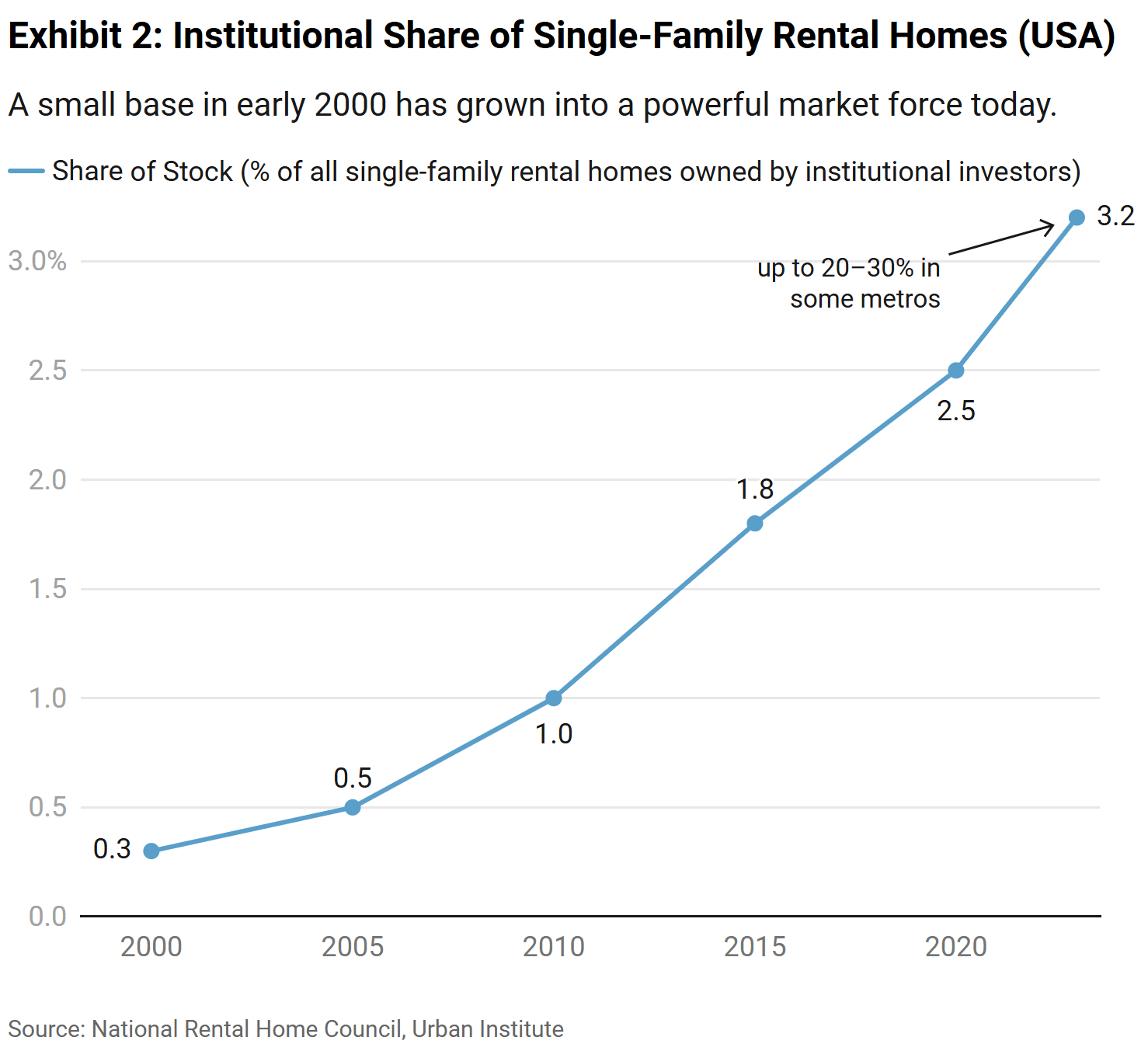 The trend accelerated after the 2008 financial crisis. In the era of near-zero interest rates, loans were cheap for anyone who already had collateral. Institutional investors could borrow billions at almost no cost, scoop up homes, and turn them into rental portfolios. For ordinary households without that starting capital, the same era was not an opportunity. It was the beginning of being permanently priced out.